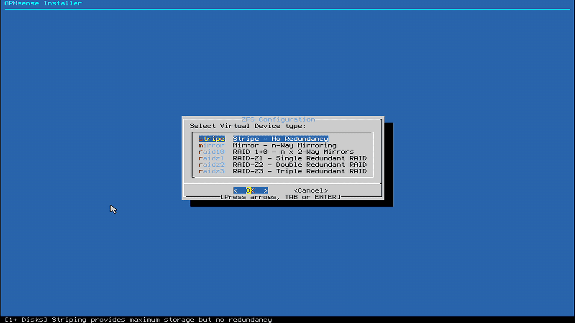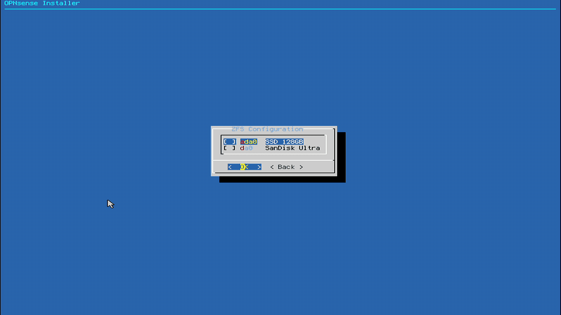 今回はZFSを利用します。USPがないルーターなんで停電でシャットダウンをせずに落ちる可能性がありますからね。ZFSのメリットをとります。