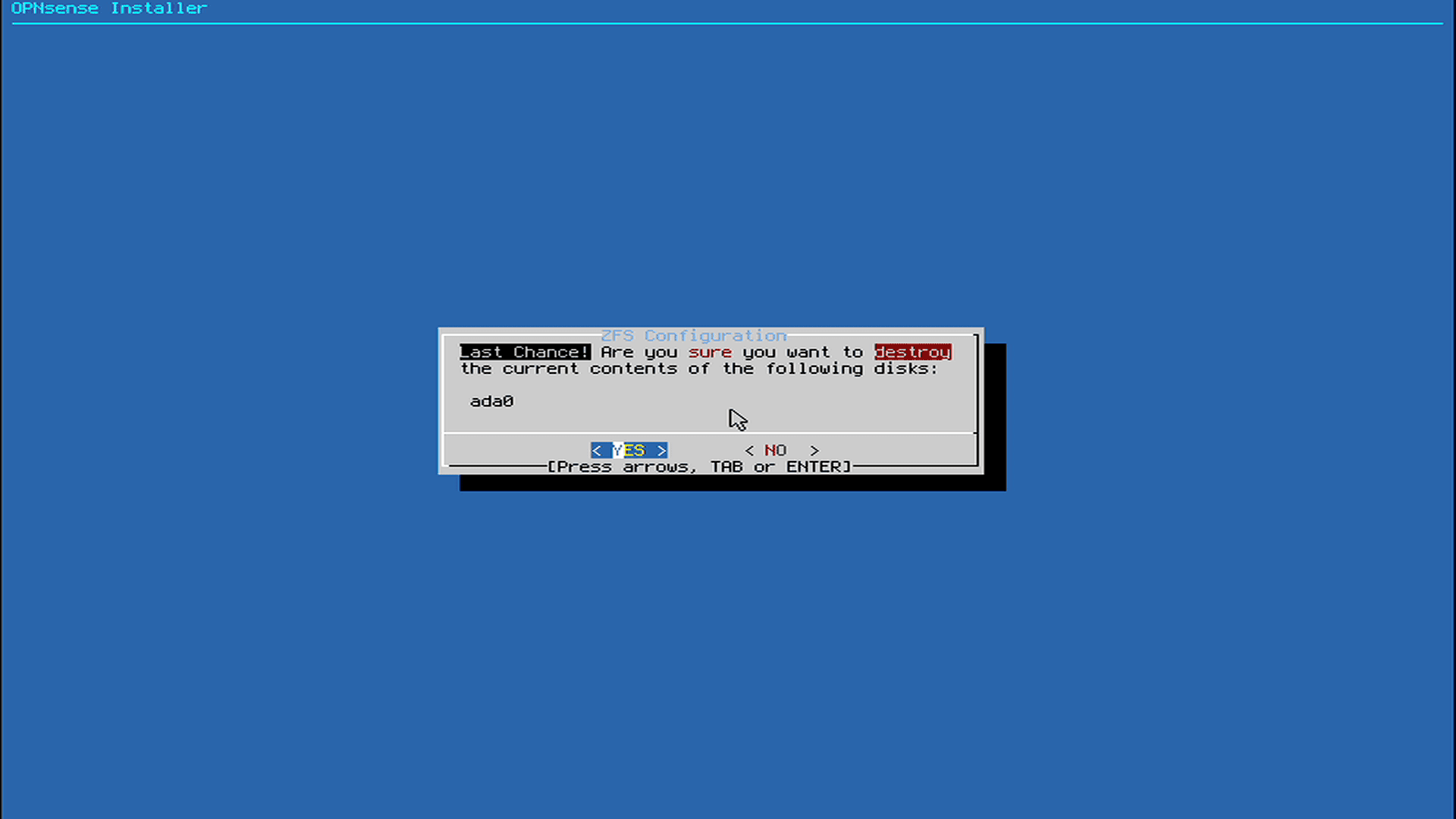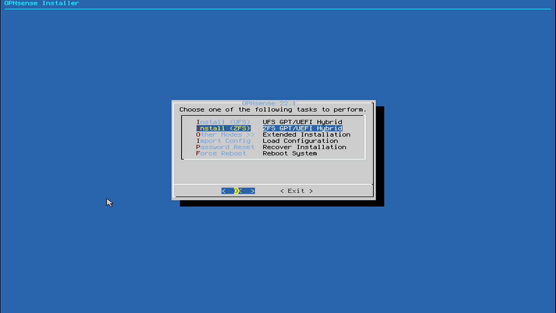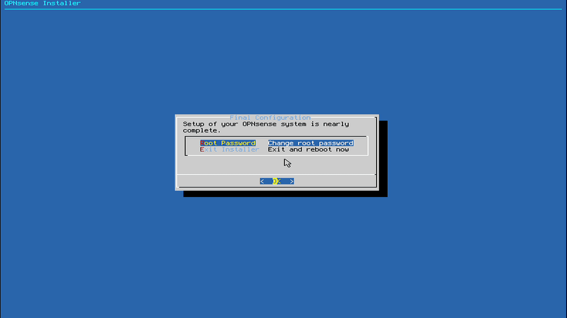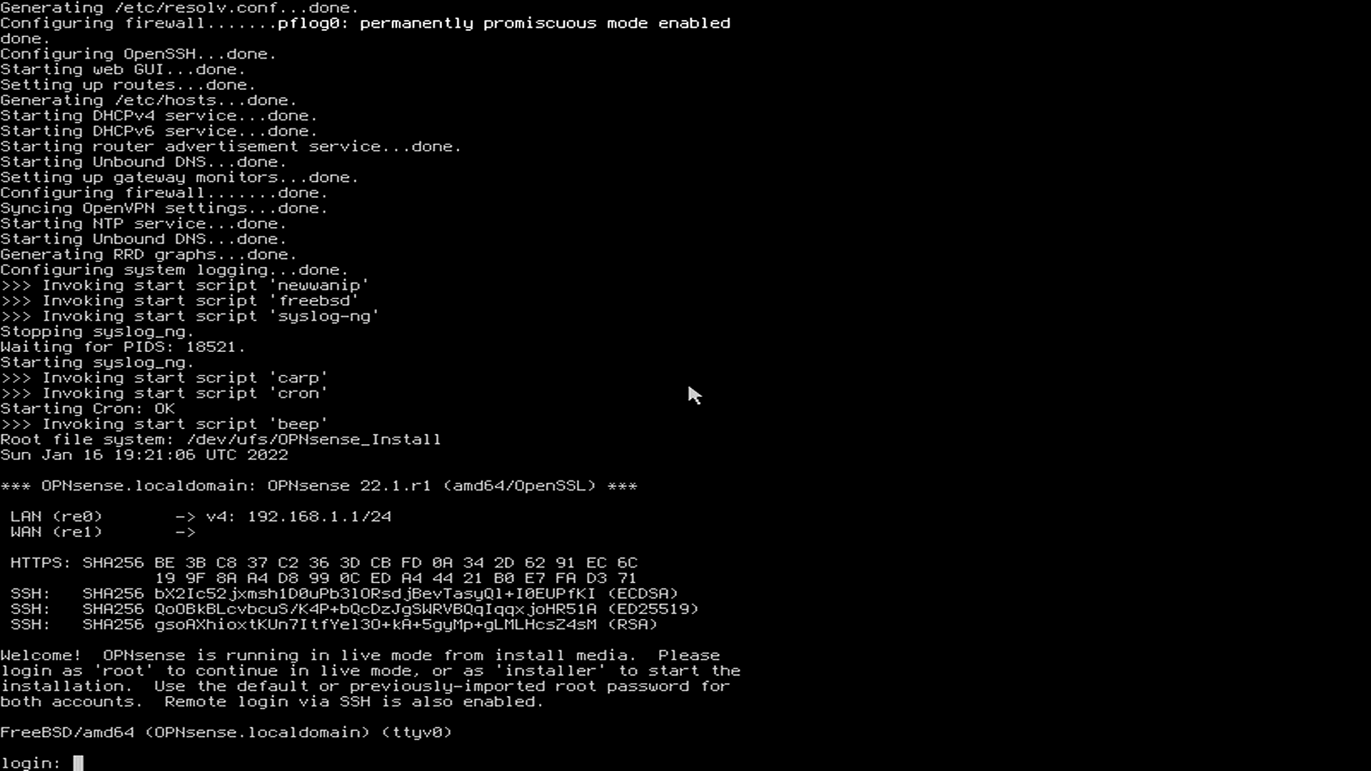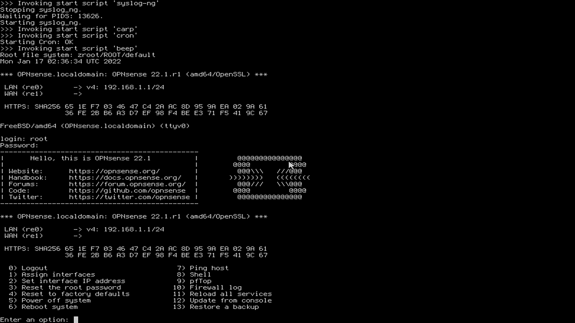 • User: installer • Password: opnsense
