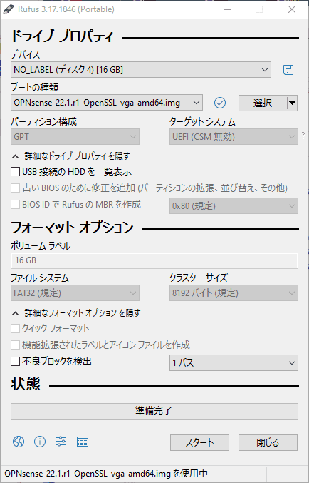 ・vgaのメインインストールファイル(Europe) https://opnsense.c0urier.net/releases/22.1/OPNsense-22.1.r1-OpenSSL-vga-amd64.img.bz2