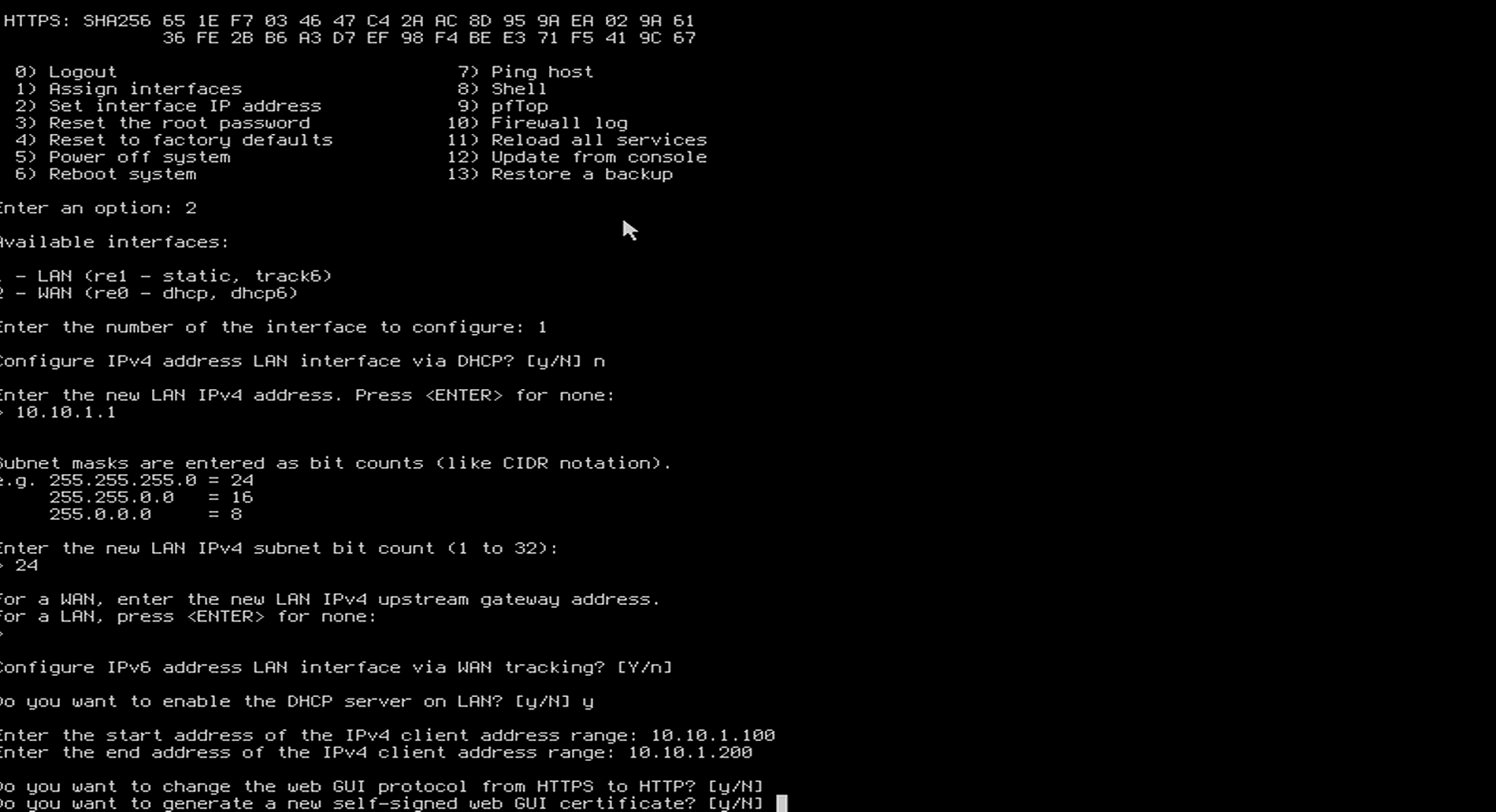 あとはLAN側からWebGUIに入ってよしなにやってください。